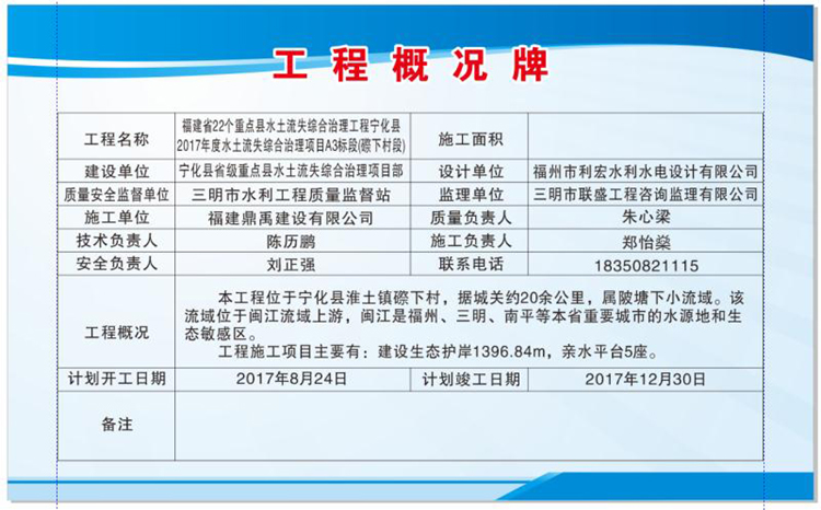 福建省22个重点县水土流失综合治理工程宁化县2017年度水土流失综合治理项目